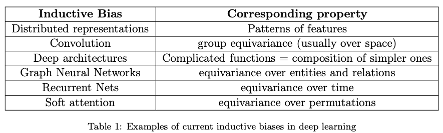 对于目前的深度学习方法,它们擅长于 system 1 task,即能在短时间中(GPU 上)在训练它们的数据上得到好的结果;另一方面,人类擅长于 system 2 task,具有快速学习和系统性泛化的能力。因此,我们希望下一代的深度学习技术能结合这两方面:system 1 / implicit / unconscious + system 2 / explicit / conscious. 接下来的部分将提出一些有助于提升 system 2 能力的 inductive bias.